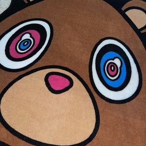 SO CUTE! Kanye’s Classic Graduation Bear Rug. Brown w/blue eyes. Never used. 3 ft by 3 ft.