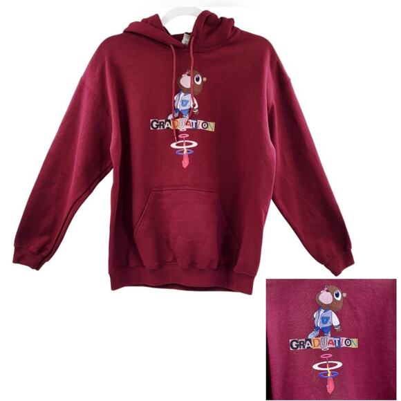 Kanye West GRADUATION Themed Dropout Bear Mascot Maroon Red Hoodie Men's Size M
