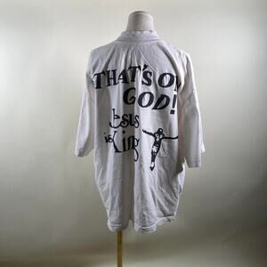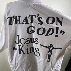 Kanye west Jesus is King church tee. Has light wear with yellowing on inside of collar and slight cracking on the bubble font shown in photos