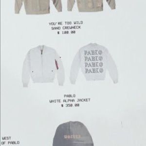 Bomber jacket size (large) extremely limited never worn great jacket to have it says Los Angeles on the back and Pablo on the front