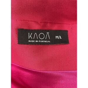 The Kaoa Pink Fushia Feathers Cuff Blazer Jacket in size M/L is a stylish and feminine garment designed for women. Made from polyester satin fabric, this blazer features a flattering cuff and a vibrant pink color. The basic jacket style adds a touch of sophistication to any outfit, making it a versatile and chic addition to any woman's wardrobe. Perfect for adding a pop of color and texture to your ensemble.