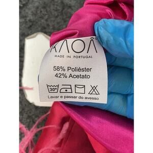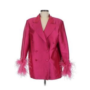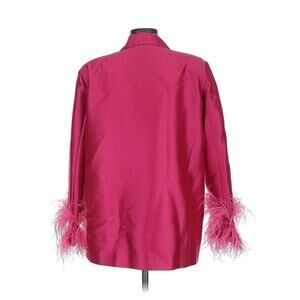 Kaoa Pink Fushia Feathers Cuff Blazer Jacket Satin M/L