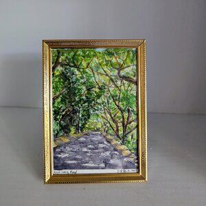 Kapa'a Quarry Road II- Sun Dappled Shady Trees Original Watercolor Brass Frame