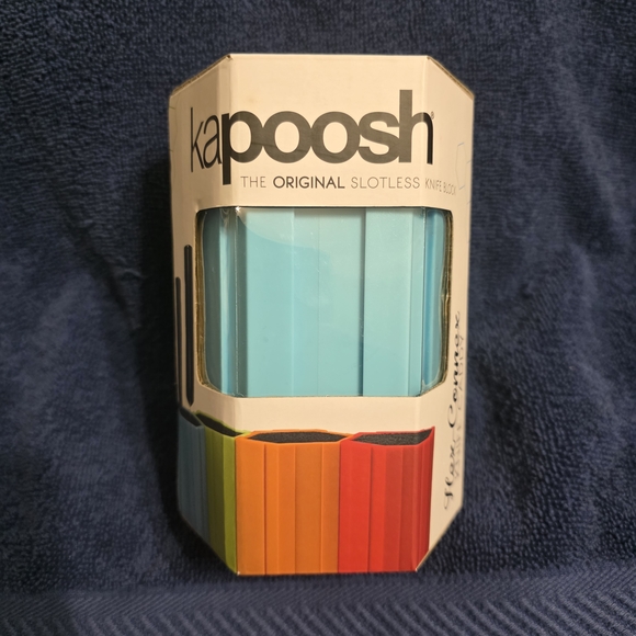 Kapooch slotless knife block with a colorful design. Features blue, green, yellow, orange, and red sections.