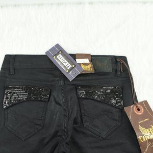 Kaporal 5 Jeans Size 28 US Size 38 EUR Clara Black Pants Embellished Back Pockets