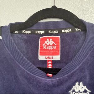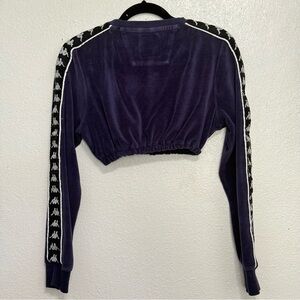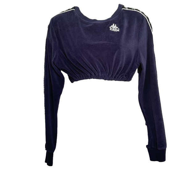Kappa Blue Velour Crop Top Crew Neck Long Sleeve Size Small