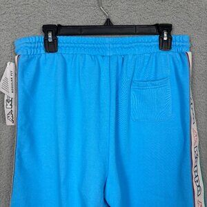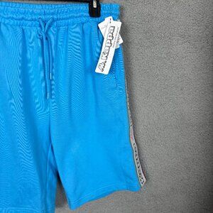 Whether you're stepping onto the pitch or into the streets, Kappa's Mens Logo Tape Express Shorts are a good option. They're clad in Omini-logo taping for that classic Kappa feel. Elastic waistband with adjustable drawstring and pockets. They come in size large and are blue with graphic tape down the sides These are constructed of Cotton and Polyester. They are New With Tag's.