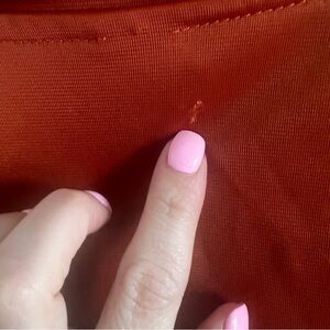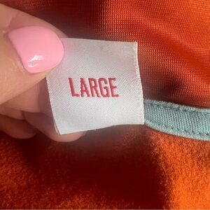 Retro feel with the colors and the yellow velvet down the arms with the logo embossed. There is a blemish on the back shoulder and shown in photo. Size large