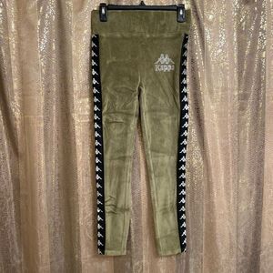 Kappa Olive Green 222 Banda Stele Rhinestone Leggings, L NWT
