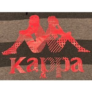 Kappa Pullover Hoodie Size L Two Tone Gray Stripe Pink Glitter Logo Cozy Lounge