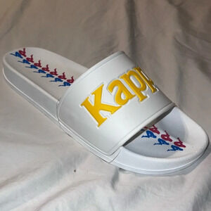 Brand-new with tags Kappa silhouette Spellout logo white slides USA size 12 EU size 46