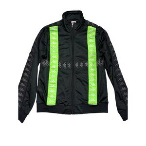 Kappa Track Jacket Mens Size X-Small Black Lime Green Stripe Full Zip Activewear Good gently pre-owned