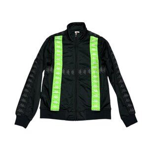 Kappa Track Jacket Mens Size X-Small Black Lime Green Stripe Full Zip Activewear