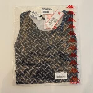 Kappa Womens Authentic Teknas Black Smoke White Antique Slim Fit Racerback Crop Top Medium NWT