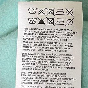Nice pre-owned condition, but has a very faint blue mark near front hem, and a small dark mark on a sleeve (last 2 photos)