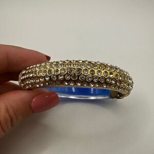 Kara Ross dual sided gold tone rhinestone, blue resin clamper bracelet!