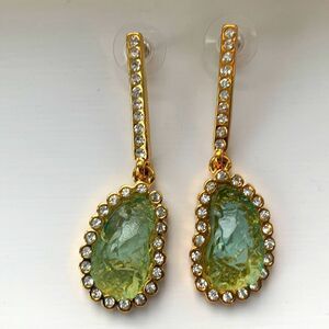 TAGS: kara ross earrings, green drop earrings, crystal edge earrings, kara ross 10021, gold tone dangle earrings, fractured finish jewelry, boutique statement earrings,