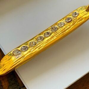 These Kara Ross gold tone bar earrings have a clean profile with crystal detailing down the front.
