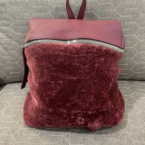 Kara offers a playful reboot of the most humble and serviceable of bags, the backpack. With its sublimely soft shearling and fabulously feminine coloring, this little carry-all turns function into fashion. In a new condition used couple times smoke-free home