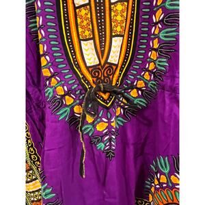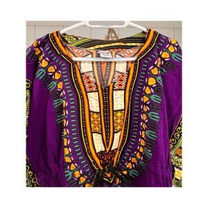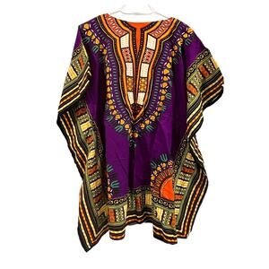 Karan Dashiki Shirt Cover Up 100% Cotton Boho Festival Tribal Print Purple 2X