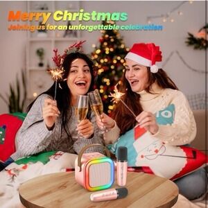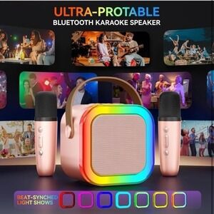 Karaoke Machine for Kids Adults, Portable Bluetooth Mini Karaoke Microphone Singing Speaker with 2 Wireless Mic and Light,Toys for All Smartphones,Birthday, Family,Home Party (Rose Gold)