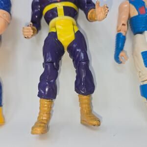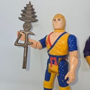 This is a lot of 3 Chuck Norris: Karate Kommandos action figures from 1986 made by Kenner. Included are three figurines - Reed Smith, Kung Fu Chuck Norris, and Super Nina. The Reed Smith character comes with the original weapon but the other two do not incude their accessories. Their limbs move as intended and they only have light signs of use but no damage or defects.