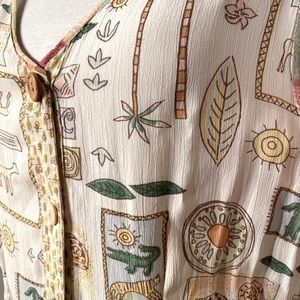 Karavan Vintage Whimsical print maxi tank style button bodice rayon dress size S