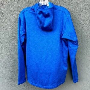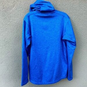 Great condition Karbon Mens Full Zip Hoodie. It is a warm, attractive, well-constructed fleece-lined jacket that can be used in all seasons. 100% polyester means easy care. There's a high scuba neck design for added warmth and comfort. Two mesh-lined front pockets have reflective taped at the edges. There's also a reflective Karbon® logon the left chest and the zipper pull.