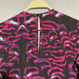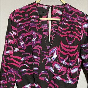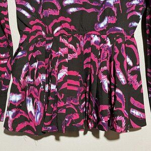 Kardashian Blouse Women Size XS Vneck Peplum Colorful Ruffle Pleat Funky Party