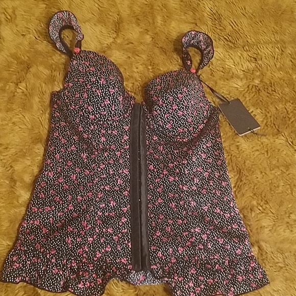 it's a cute intimate to wear under your clothes and has Clips in the front it has underwire no padding two little roses on the sleeve adorable never one with ticket😊