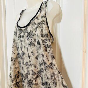 This stylist vintage Kardashian Kolection top is a sheer racerback with a deep scoop neck front. Hi-low hem with a fit and flowy fit. Wear over your favorite bottoms for any spring/summer event.