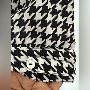 Kardashian Kollection Black White Houndstooth Geometric Print Blouse Sz XS