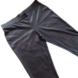 Kardashian Kollection faux Black leather tight stretch pants Size SMALL. Very lightweight, hand wash only in cold water, fast line dry. 92% Polyester, 8% Spandex, resembles leggings with no pockets. Wear as is or under a skirt/dress for added warmth or layered look. Waist: 13", Hips: 15 3/4", Length: 32.5", Inseam: 25", skinny leg width 3.5".