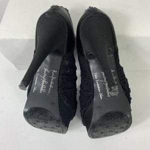 Kardashian Kollection Black Ruffle and Lace Platform High Heels.