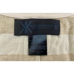 Indulge in effortless style with this stunning Kardashian Kollection Striped Blouse. Featuring cream stripes that exude sophistication, this blouse is a true fashion statement. Crafted with meticulous attention to detail, it offers a flattering fit and showcases your impeccable taste. The size is Small, providing a comfortable and tailored look. Made with high-quality materials, this blouse ensures both comfort and durability. Despite being pre-owned, it is in excellent condition, showing minimal signs of wear. Elevate your wardrobe with this iconic piece from the Kardashian Kollection and exude elegance and charm wherever you go.