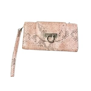 Keywords: Kardashian Kollection Pink & Black Fabric Faux Snakeskin Wallet / Wristlet