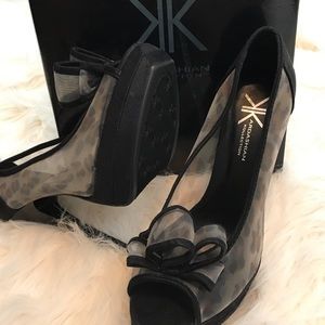 Kardashian Kollection peep toe mesh size 10 pumps with a beautiful subtle leopard pattern on mesh.