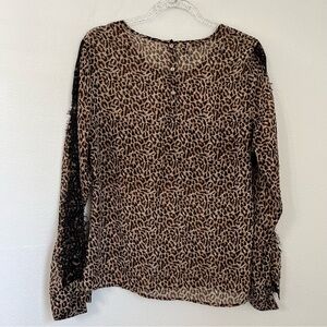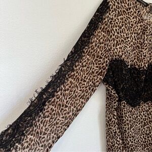 Kardashian Leopard Print Lace Semi Sheer Long Sleeve Blouse