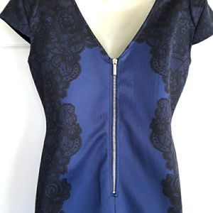 Kardashian Kollection fitted midi Dress in cobalt blue with black lace p…