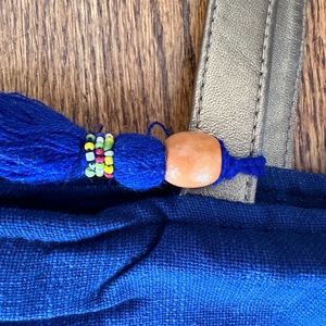 *Fringe Blue Tassel w/Multi Colored Beads and Wood Bead