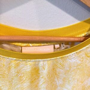 Karen By Simonsen Women’s Yellow White Leaf Patterned Tee Crewneck Size 8
