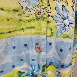 In great condition Karen Hart Neon Yellow & Blue Siesta Key Sequin Blazer Size Medium Women's.