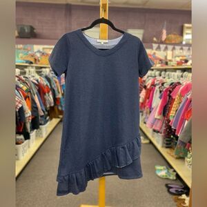 Karen Heart LAdies Sm Blue Dress w/ Striped Ruffle BOttom NEW