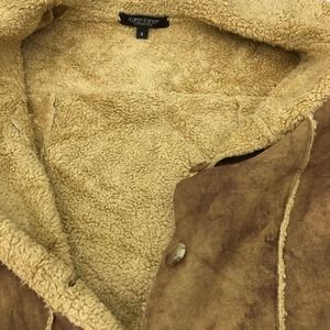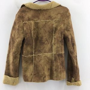 Karen Jane Chestnut Brown Sherpa Lined Button Up Bomber Jacket Womens Size S