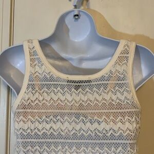 Mesh and textured trim, see through (beige bra underneath on mani), stretchy fabric, very nice condition