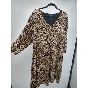 Karen Kane A-Line Dress Plus 2X Leopard Print V-Neck Pocket 3/4 Sleeve Brown