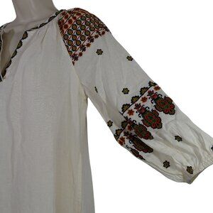 Karen Kane Beige Boho Tiered Dress Women Size XS Embroidered Linen Blend