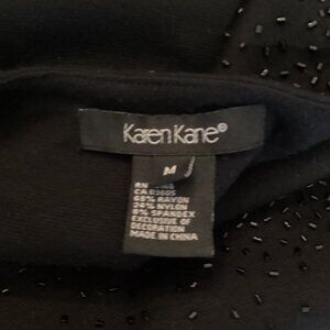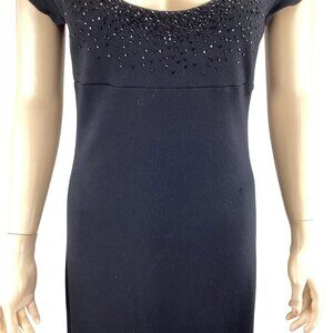 Karen Kane Black Beaded Scoop Neck Dress Size Medium Knit Stretch Knee Length