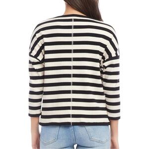 Karen Kane Black Cream Striped Boat Neck 3/4 Sleeve Ribbed Top Casual Knit