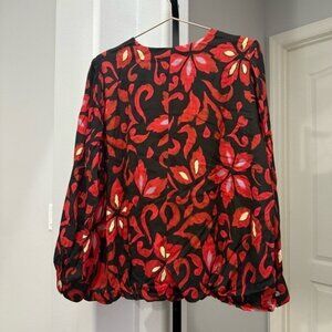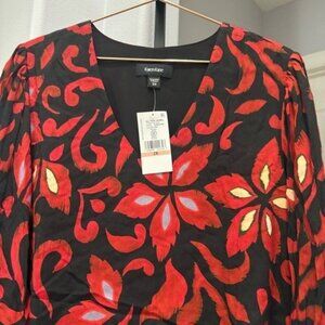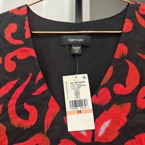 Karen Kane Black Floral All That Shines Top Blouse Size 2X Black Red Viscose